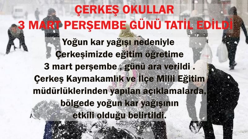 ÇERKEŞ OKULLAR 3 MART PERŞEMBE GÜNÜ TATİL EDİLDİ
