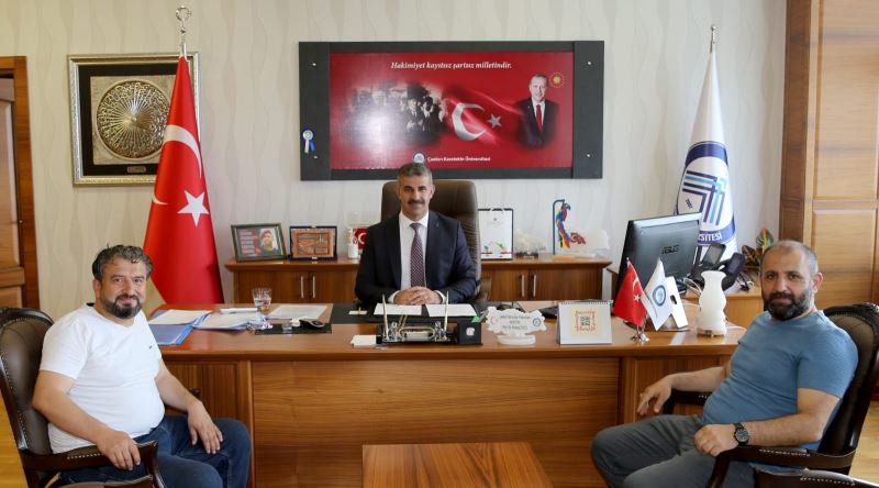 GAZETECİ TURAN DEMİR VE ERCAN ŞEKER REKTÖR PROF. DR. HARUN ÇİFTÇİ’Yİ ZİYARET ETTİ