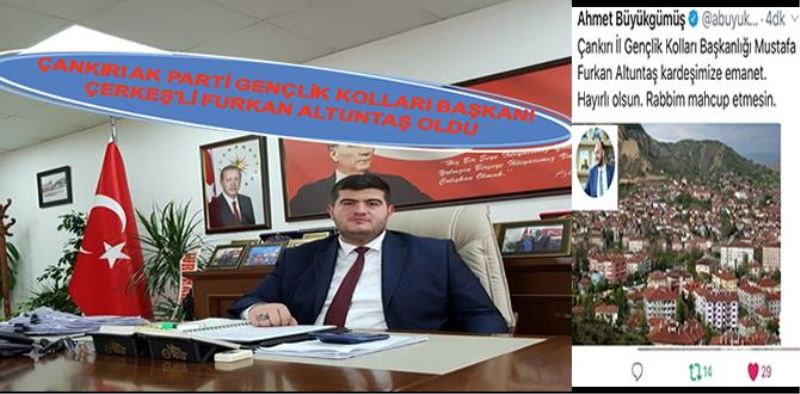 AK Parti Çankırı Gençlik Kolları Başkanı Mustafa Furkan Altuntaş Oldu. Haberi bursa milletvekili ak parti genel merkez gençlik kolları başkanı Ahmet Büyükgümüş sosyal medya hesabından duyurdu.