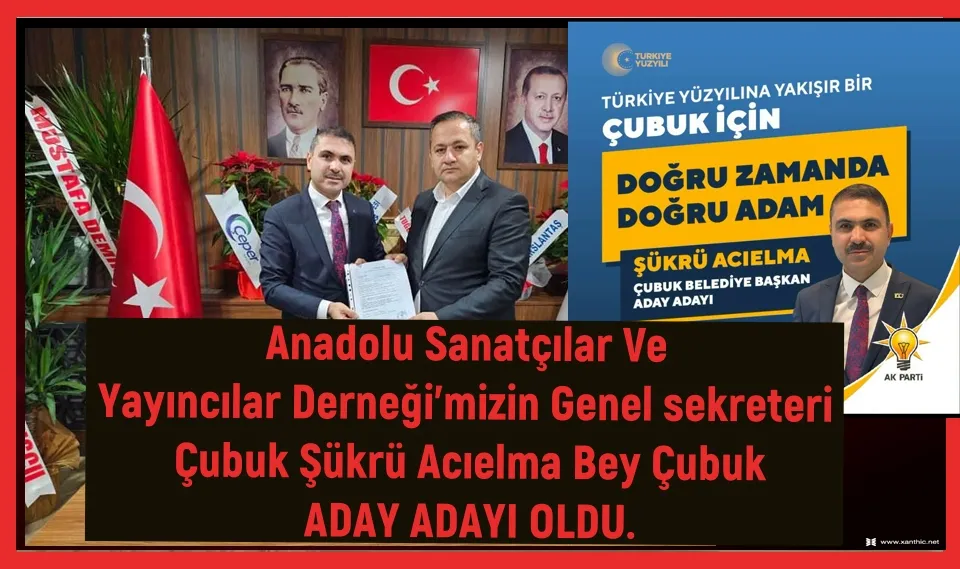 Anadolu Sanatçılar Ve Yayıncılar Derneği’mizin Genel sekreteri Şükrü Acıelma Çubuk'dan ADAY ADAYI OLDU.