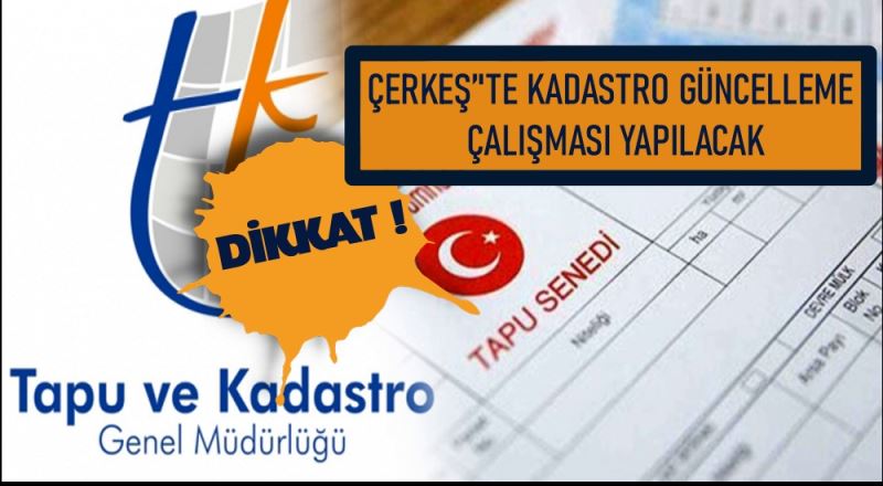 DİKKAT!ÇERKEŞ’'TE KADASTRO GÜNCELLEME ÇALIŞMASI YAPILACAK