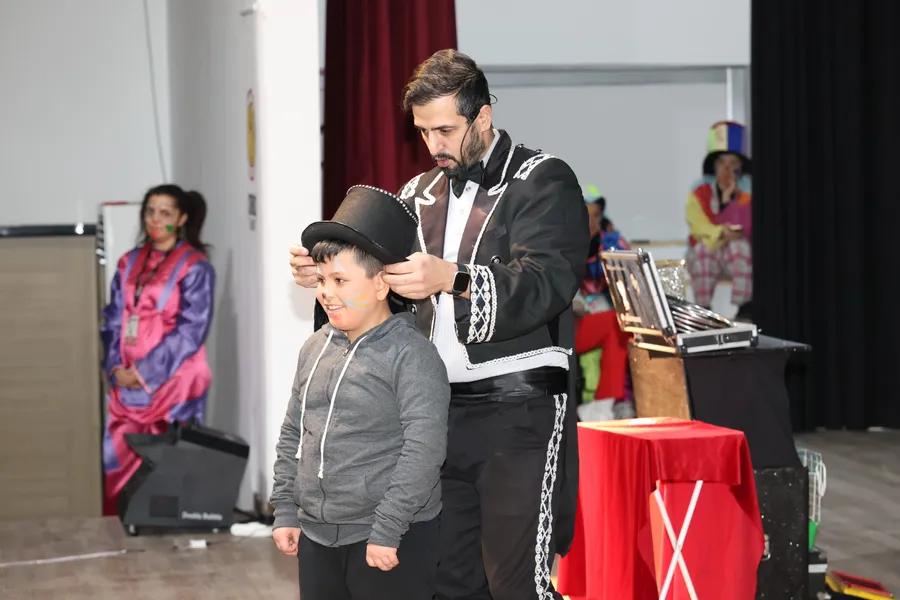 etkinlikte salon hınca hınç dolarken, çocukların heyecanı gözlerinden okundu. Program kapsamında sahne alan sirk ekibi; akrobasi gösterileri ve illüzyon şovlarıyla hem çocukları hem de velileri büyüledi.
