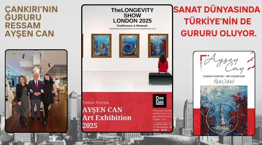 Çankırı, sadece tarihi ve doğal güzellikleriyle değil, aynı zamanda sanat alanındaki yetenekleriyle de öne çıkmaktadır. Bu bağlamda, hemşerimiz Ayşen Can, Londra'da açılan "Maviye Yolculuk" sergisiyle hem Çankırı'yı hem de Türkiye'yi gururlandıran bir isim olmuştur. 2025 yılında The Longevity Show – Conference & Network kapsamında, 12 Aralık'ta DASDAS BOX'ta sanatseverlerle buluşacak olan bu sergi, Ayşen Can’ın sanatsal yolculuğunun önemli bir parçasını oluşturmaktadır.