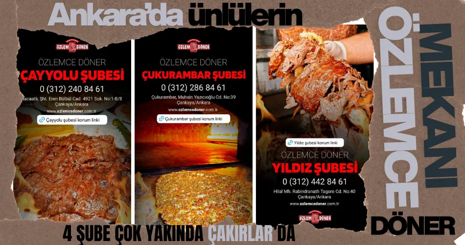 Ankara'nın kalbinde yer alan 4 şubesi ile Özlemce Döner, sadece yerel halkın değil, aynı zamanda ünlülerin de gözdesi haline gelmiştir. Bu eşsiz döner, lezzeti ve kalitesiyle pek çok döner sevenlerini kendine çekmektedir.