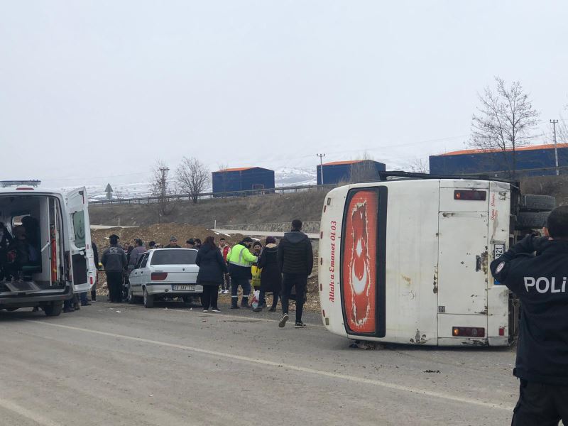 Alınan bilgiye göre, M.U. idaresindeki 18 AAC 921 plakalı servis aracı ile H.Ö.A idaresindeki 61 K 0201 plakalı TIR çarpıştı. Çarpışmanın etkisiyle servis aracı devrildi. İhbar üzerine polis ve sağlık ekipleri gönderildi.