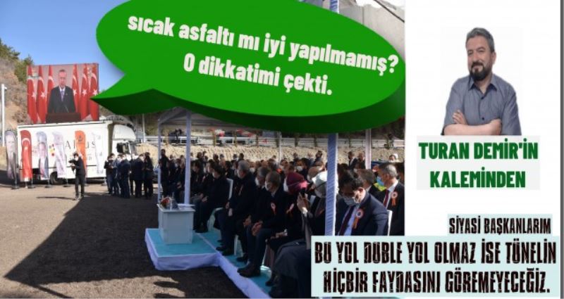 Bu yol duble yol olmaz ise tünelin hiçbir faydasını göremeyeceğiz. Madem tünel yapıldı madem bu kadar kar sağlıyor yapın bu duble yolu bir ilçe daha kurtulsun refaha ersin.YOKSA SİZ BU TÜNELİ BUNUN İÇİN YAPMADINIZ MI?