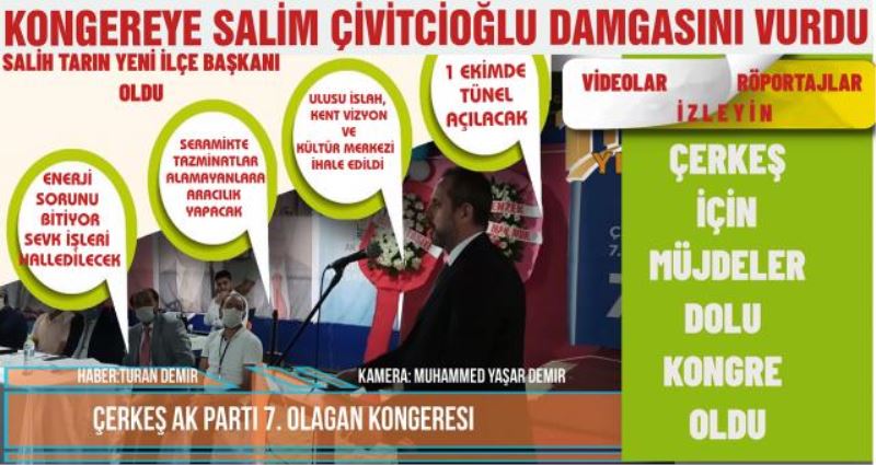 Ak Parti Çerkeş 7. Olağan Kongresini Çerkeş belediye sosyal tesislerinde sınırlı sayıda üyeler ve konukların katılımı ile yaptı. Kongreye tek liste ile giren Salih TARIN ilçe başkanı oldu.