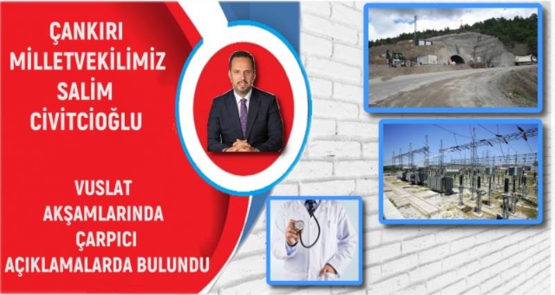 Çankırı milletvekilimiz Salim CİVİTCİOĞLU Turan DEMİR tarafından hazırlanıp sunulan hafta için her gün saat 20:00 de başlayan Vuslat akşamları programında çarpıcı açıklamalar yaptı ve Çerkeş’e güzel haberler verdi.Sizler için tünelden elektirik sıkıntınsa ,doktorlarımıza kadar aklımızdaki soruları sorduk .Sizler için sayın vekilimiz ile yaptığımız canlı telefon bağlantısını sunuyoruz.iyi seyirler