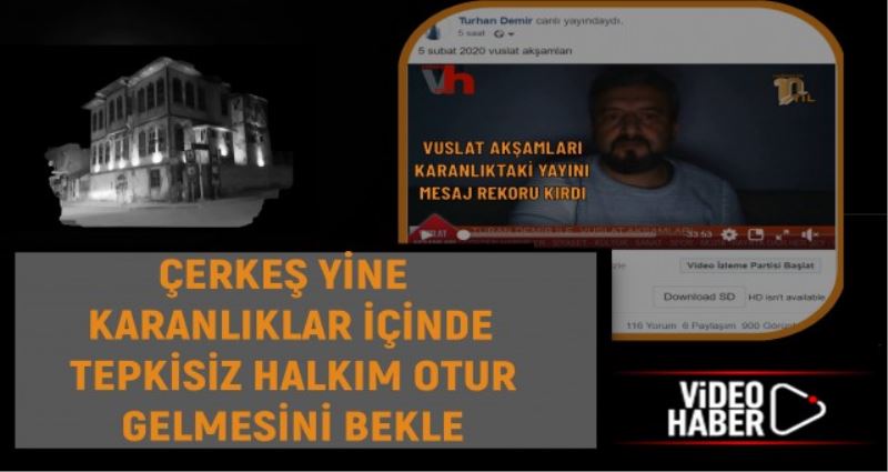 Çerkeş vuslat haber tarafından hazırlanan her akşam saat 20:00 başlayan VUSLAT AKŞAMLARI elektrik kesintisi nedeniyle karanlıkta pc şarj bitinceye kadar yapıldı VUSLAT AKŞAMLARINA katılan vatandaşlar yorumlarında kesintiden dolayı yaşadıkları sıkıntıları dile getirdiler, evlerde bulunan küçük bebeklerin, yaşlı hastaların sıkıntılarını, esnaflarımız ve sanayicilerimiz ise iş gücü kaybını maddi zararlarını bu sebebden karşılaştıkları sıkıntıları dile getirdiler.