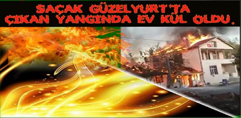 SAÇAK GÜZELYURT'TA ÇIKAN YANGINDA EV KÜL OLDU.