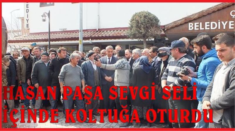 Daha sonra makama geçen Başkan Hasan Paşa Çerkeş halkı ve partililer tarafından sevgi gösterileri arasında makamına oturdu.