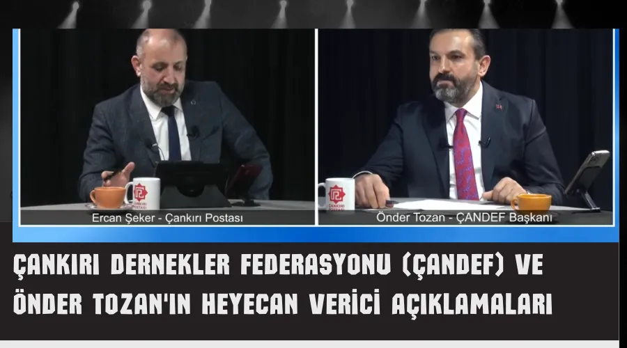 İstanbul Çankırı Dernekler Federasyonu (ÇANDEF) Genel Başkanı Önder Tozan, Çankırı Postası TV’de yayınlanan Gündem Özel programında Ercan Şeker ile birlikte federasyonun geçmişi, bugünü ve geleceği hakkında önemli bilgiler paylaştı. Çankırı Dernekler Federasyonu (ÇANDEF) ve Önder Tozan'ın Heyecan Verici Açıklamaları