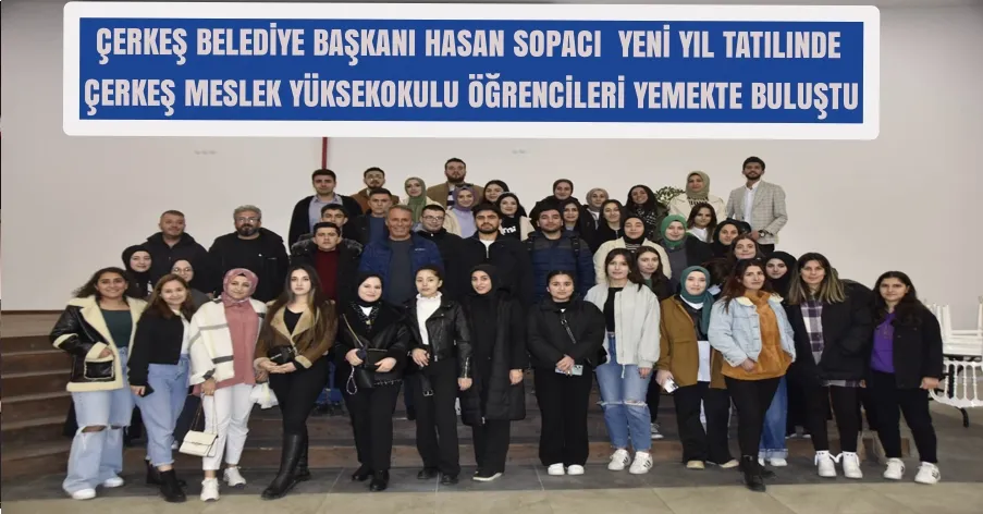Çerkeş belediye başkanı yeni yıl tatilinde Çerkeş Meslek Yüksekokulu öğrencileri, ile akşam yemeği yedi, sohbet etti onların sorunlarını dinledi. Güzel bir akşam yemeğinin ve sohbetin sonunda hatıra fotoğrafı çektirdiler.