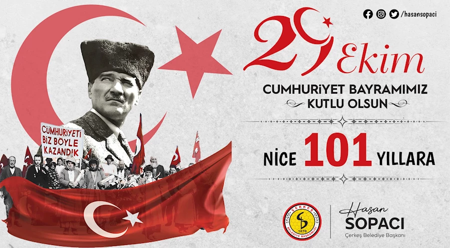 Cumhuriyetin 101’inci kuruluş yıl dönümü dolayısıyla bir mesaj yayımlayan Çerkeş Belediye Başkanı Hasan SOPACI,