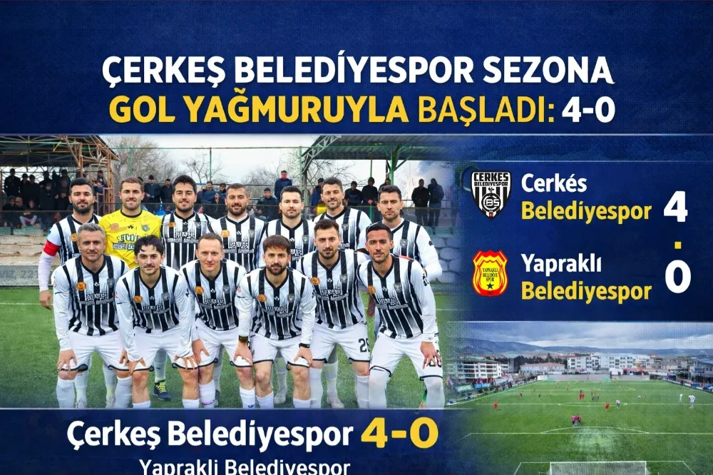 İlçemizin gururu Çerkeş Belediyespor, yeni sezonun ilk maçında Yapraklı Belediyespor karşısında sergilediği etkili oyunla sahadan 4-0’lık farklı galibiyetle ayrılarak sezona 3 puanla başladı.