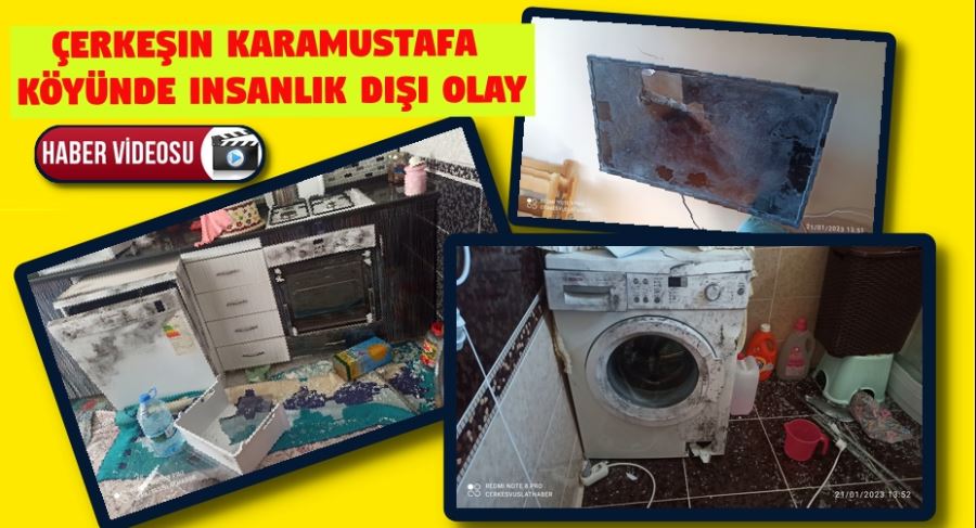 Çerkeş’in Karamustafa köyünde Cemali, Menderes, Kadir,İzet ve Mustafa Seymen kardeşlerin evlerine kimliği belirsiz şahıslar tarafından girilerek evlerdeki elektrikli ev aletlerine ve elektronik eşyalara zarar verilmiş. Olayın ne zaman meydana geldiği bilinmemektedir. Bu insanlık dışı olay İstanbul'da ikamet eden ev sahiplerinden bir tanesinin koye gelmesıyle anlaşılmış evin durumunu o halde gören kişinin durumu Çerkeş jandarma ekiplerine haber vermesiyle olay inceleme olay yerine gelerek olay ile ilgili delil topladı.