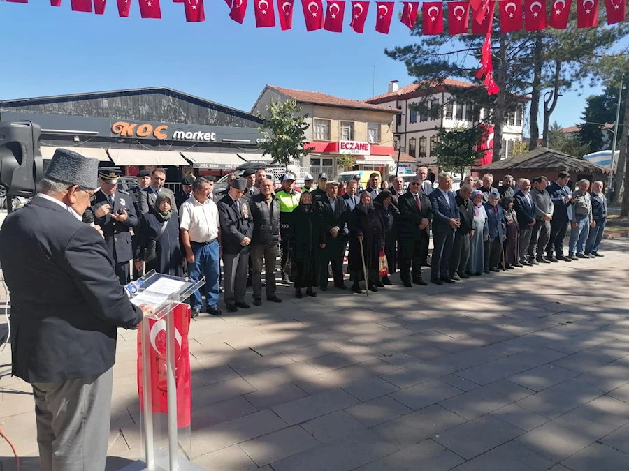 Kaymakamlık ve Belediye Başkanlığı çelenklerinin sunumunu müteakip saygı duruşunda bulunularak İstiklal Marşımız okundu. Günün anlam ve önemini belirten konuşma Kıbrıs Gazisi Satılmış Köse tarafından yapıldı.