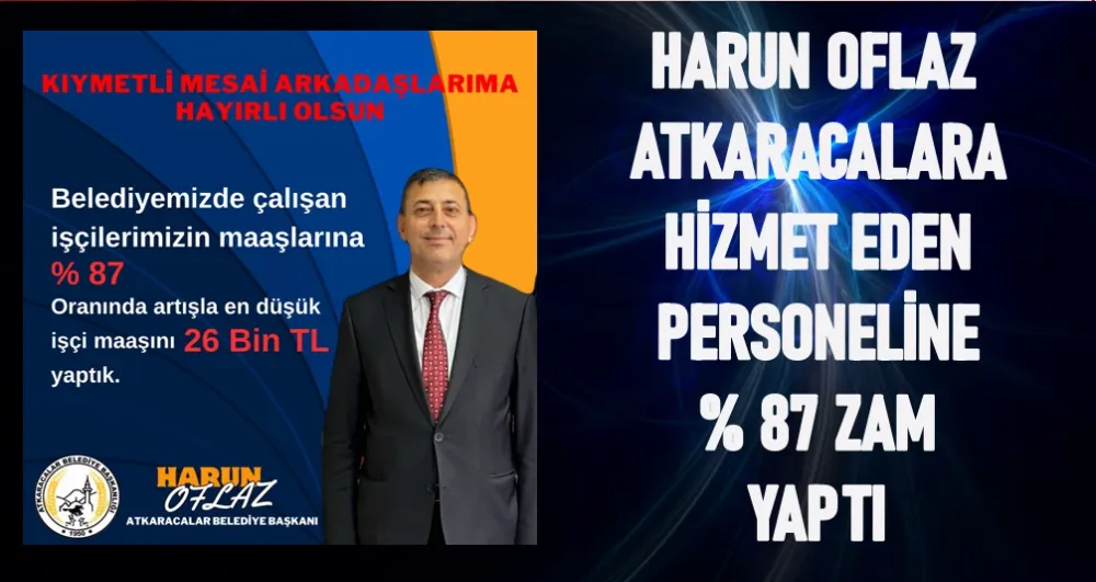 HARUN OFLAZ ATKARACALARA HİZMET EDEN PERSONELİNE % 87 ZAM YAPTI