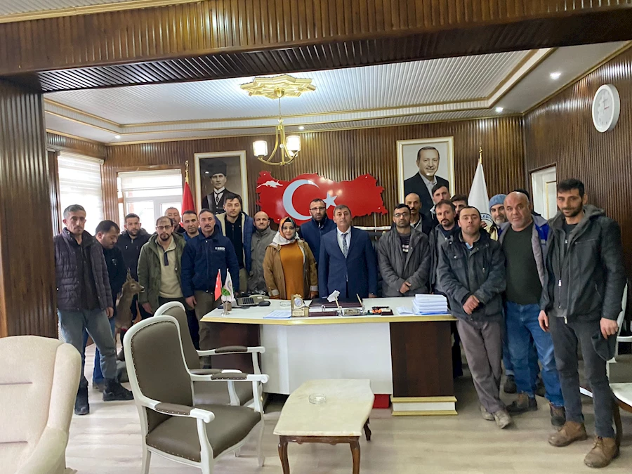 Atkaracalar Belediye Başkanı Harun OFLAZ, sözleşme imza töreni için Başkanlık makamında Personel ile bir araya geldi hatıra fotoğrafı çektirdi.