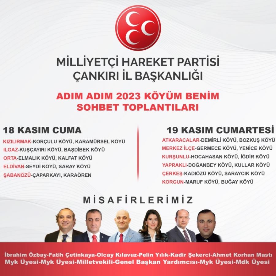 Milliyetçi Hareket Partisi (MHP) Genel Başkanı Devlet Bahçeli’nin talimatı ile Türkiye genelinde düzenlenen “Adım Adım 2023 Köyüm Benim Sohbet Toplantıları” Çankırı’da start alıyor.