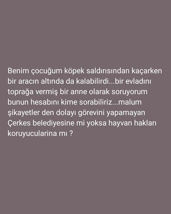 Kendilerinin de hayvan sever olduklarını söyleyen aile çocuklarının çok korktuğunu köpekleri çok sevdiğini ama artık onlardan korktuğunu ifade ettiler. En azından köpekler barınak yapılıp orada beslenseler ve oradan sahiplen isteyenler alsa üstelik veteriner ile tedavileri yapılsa daha iyi olmaz mı diye tepkilerini dile getiren Ulupınar ailesi, Çerkeş vuslat haberden sesinin duyurulmasını istedi.