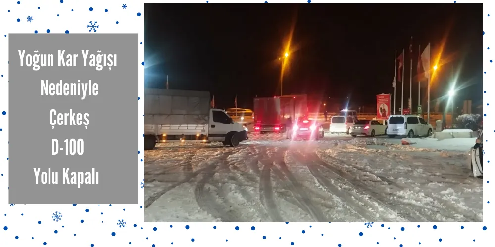 Çerkeş ilçesinde yoğun kar yağışı nedeniyle D-100 kara yolu trafiğe kapatıldı. Bu durum, yolcuların güvenliği açısından önemli bir adım olarak alındı. Yoğun kar yağışı, yolda kalan araçların kayganlaşmasına ve bazı kazaların meydana geldiğine neden oldu1.